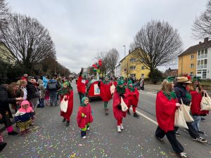 Die Tomaten waren wieder dabei! Bei trockenem aber sehr kalten Wetter zogen die Tomaten wieder von Hochheide bis Moers. Viele Zuschauer säumten den Zugweg, die Stimmung war gut. Es hat allen viel Spaß.